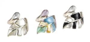 3059. *Ensemble de trois bagues à motif de feuilles stylisées serties...