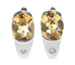 3067. *Boucles d'oreilles serties de citrines taille ovale facettée re...