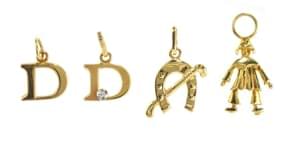 3078. Lot de quatre petites pendeloques, l'une à motif de fer à cheval...