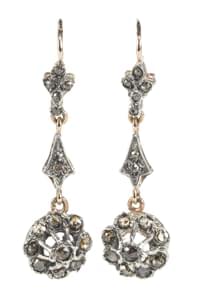 3090. Pendants d'oreilles retenant des motifs de fleurs serties de ros...