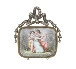 3094. Pendentif orné d'une miniature rehaussée d'un motif de nœud sert...