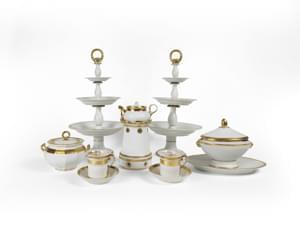 Paris, porcelaine, comprenant: tisanière, saucière, sucrier, pai...