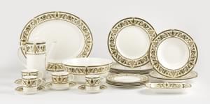 3923. Service à dîner modèle Windsor à motif de rinceaux noirs et or