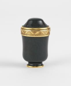 3950. Boîte en jaspe sanguin et monture en or, H 5 cm.