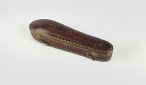 Etui gainé de lézard, H 7,5 et L 24 cm