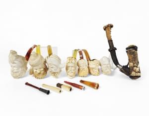 3971. Ensemble de pipes en écumes et porte-cigarettes