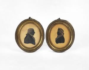 Paire de silhouettes, mine de plomb et aquarelle sur papier, 8,5...