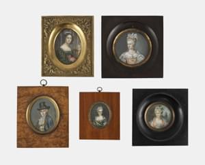 3976. Lot de cinq miniatures dans le style du XVIIIe s