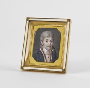 Portrait d'homme, miniature à la gouache, dans un cadre en laito...