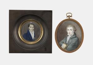 Ecrivain et homme à la veste bleue, deux miniatures à la gouache...