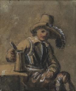 Homme à la chope, aquarelle et gouache sur papier, 9x7 cm