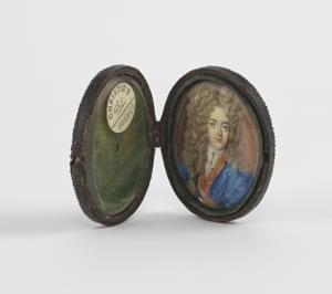 Portrait d'homme en perruque, miniature à la gouache, dans un ét...