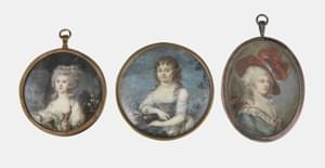 Portraits de femmes, trois miniatures à la gouache, dim. de 6 à...