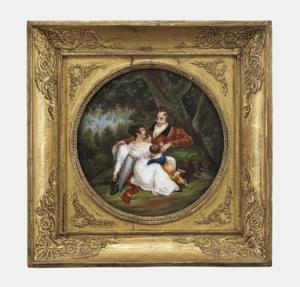 Portrait d'une famille, émail sur porcelaine, D 22 cm