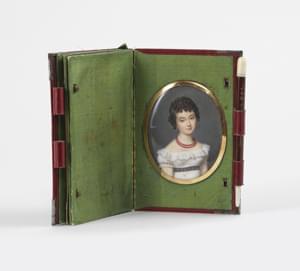 Jeune femme accoudée, miniature à la gouache, 8x9 cm