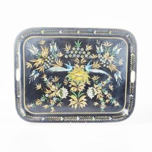 Tôle laquée noire à motifs de fleurs, 76x61 cm