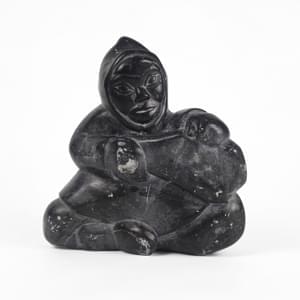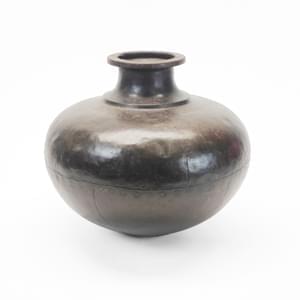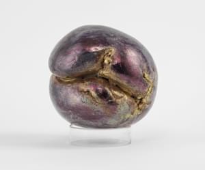 Sculpture abstraite, grès émaillé à reflet métallique, D 21 cm