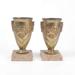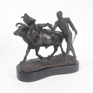 Terre-cuite et régule à patine brune et or, H 13 à 32 cm