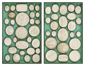4027. Collection d'empreintes de camées présentées dans deux casiers