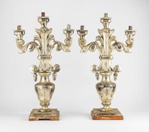 4035. Deux porte-cierges montés en lampes, en partie du XVIIIe s