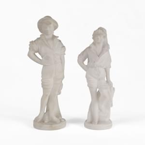 4054. Deux statuettes de personnages dans le goût médiéval, XIXe s