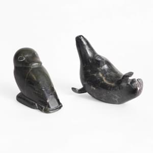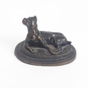4075. Trois sculptures figurant un lévrier, un teckel et un lézard