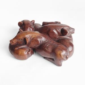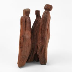 Trois personnages, bois sculpté et patiné, H 33 cm