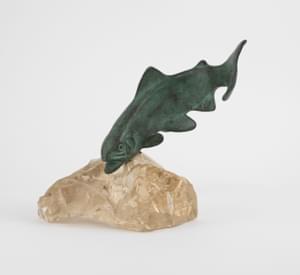 Poisson, bronze à patine verte, signée Balbaud, L 18 cm