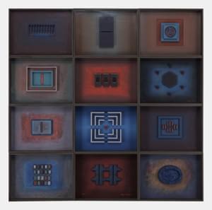 Abstraction, modèle de 12 emboîtages, technique mixte, 100x100 c...