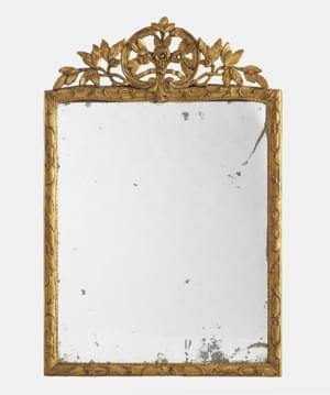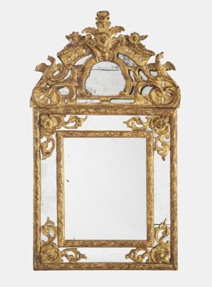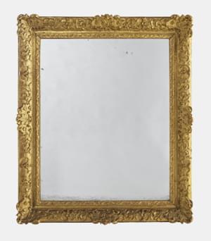 Bois sculpté doré, à motif de fleurs et rameaux, glace au mercur...