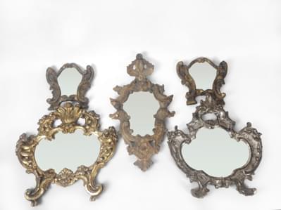 4423. Cinq miroirs et une console baroque, Italie XVIIIe s