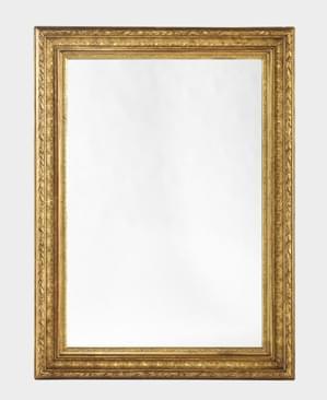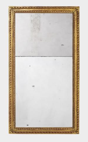 Bois sculpté doré, à motif de frise de perles, glace au mercure,...