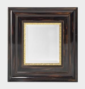 Bois noirci, frise en stuc doré et glace biseautée, 72x65 cm