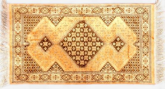 Laine et soie à motifs géométriques sur fond orange,, 59x107 cm
