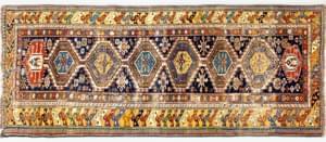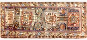 Laine et soie à motifs circulaire flanqué de quatre boteh, signé...