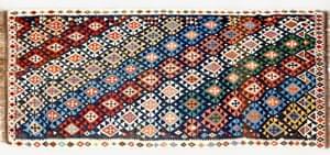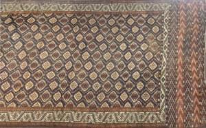 A motif central géométrique sur fond rouge brique,150x75 cm