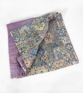Soie à motifs de fleurs et d'oiseaux, l'une sur fond bleu, l'aut...