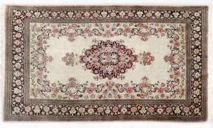 Laine et soie à motifs de fleurs sur fond beige, bordure à décor...