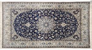 Laine à motif central sur fond bleu nuit, 300x200 cm