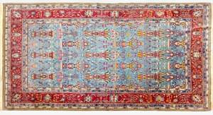 Laine à motif central quadrilobé bleu et de palmes sur fond crèm...