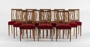 Accotoirs à tête de dauphin, soierie rouge et médaillon doré, L...