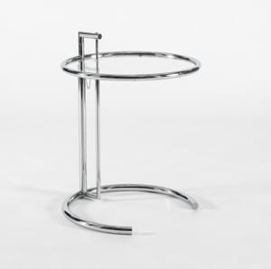 Table d'appoint ajustable E 1027, acier chromé et verre, H 75 cm...