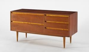 Teck, 5 tiroirs, 1 tablette, 1 vantail, 74x128x68 cm
