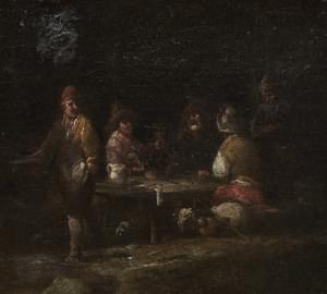 Scène de taverne, huile sur toile, 26x29,5 cm