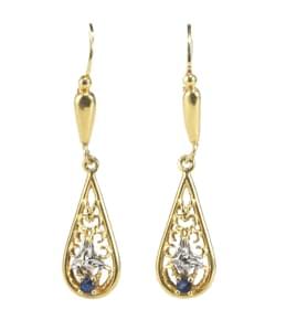 3103. *Pendants d'oreilles ajourés sertis d'un petit saphir