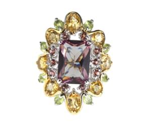 3104. *Bague centrée d'une zultanite synthétique entourée de citrines,...