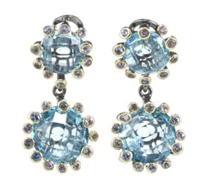 3106. *Pendants d'oreilles sertis de topazes bleues facettées entourée...