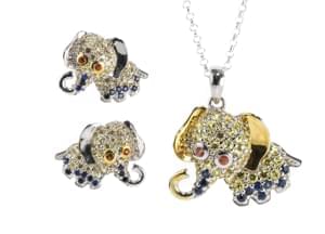 3109. *Ensemble d'un pendentif et de clous d'oreilles à motifs d'éléph...