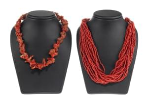 L'un composé de perles brutes de corail et l'autre multirangs de...