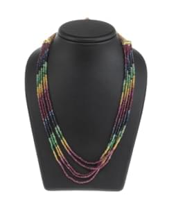 3125. *Collier composé de cinq rangs de perles facetées de rubis, saph...